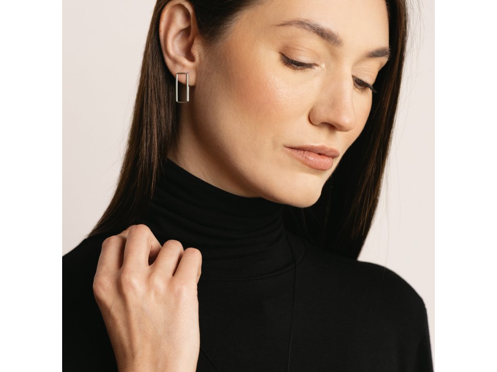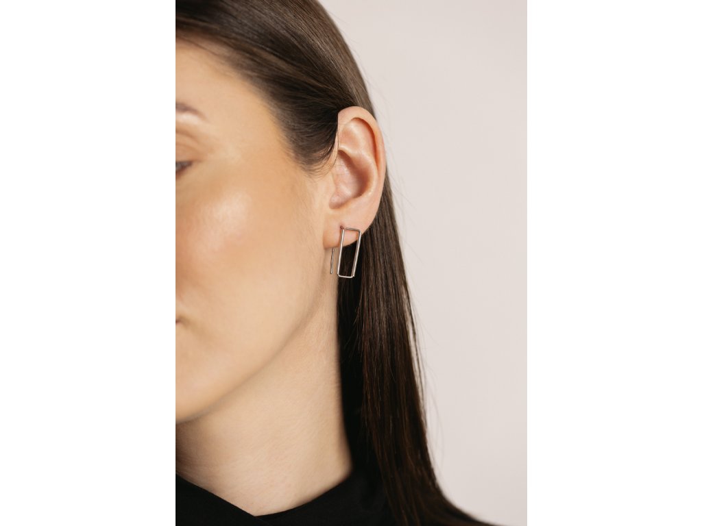 Náušnice jako jednoduchý, kompaktní objekt inspirovaný funkcionalistickou architekturou Bohuslava Fuchse.