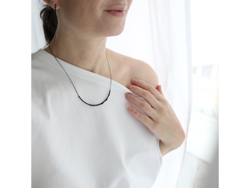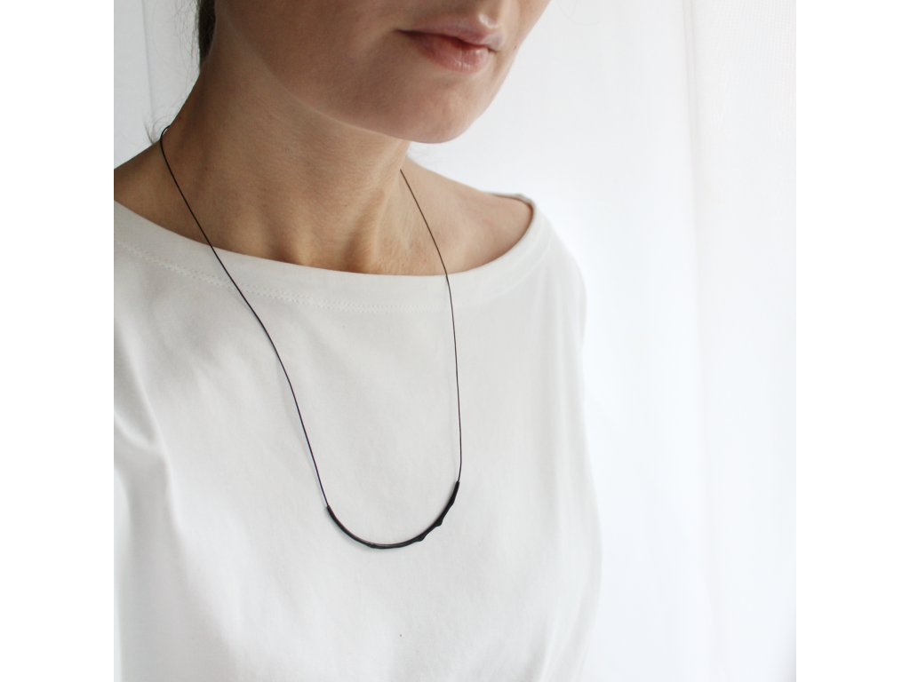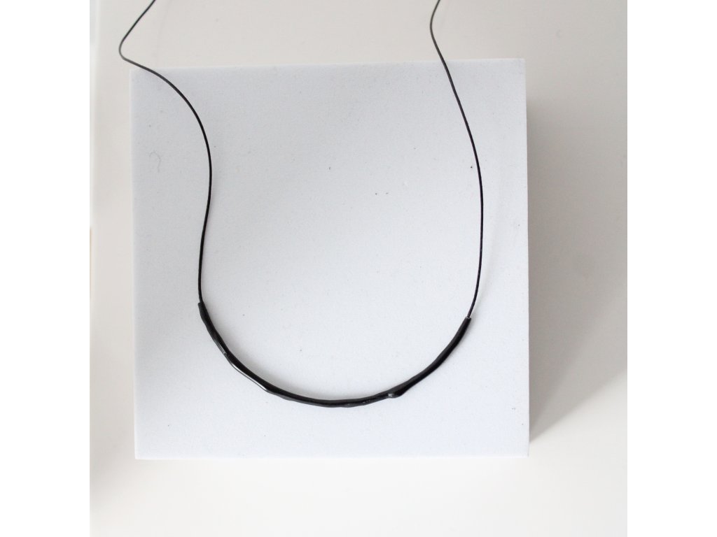 Černé lanko je syntetické, pevné. Nejdelší obvod je 80 cm, na přání vám mohu vytvořit delší (napište požadavek do poznámky v objednávce).