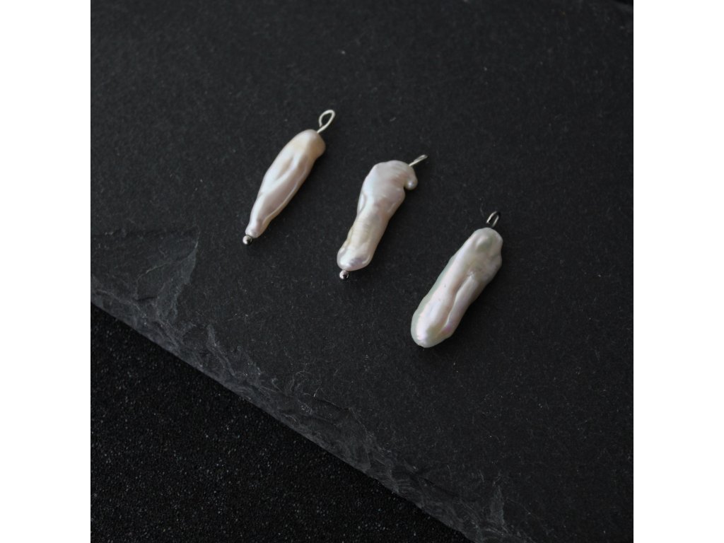 Říční perly jsou oválné, trochu nepravidelné a pokaždé trochu jiné - proto se můžou mírně lišit od těch vzorových na fotce. Velikost perly je přibližně 2 cm.