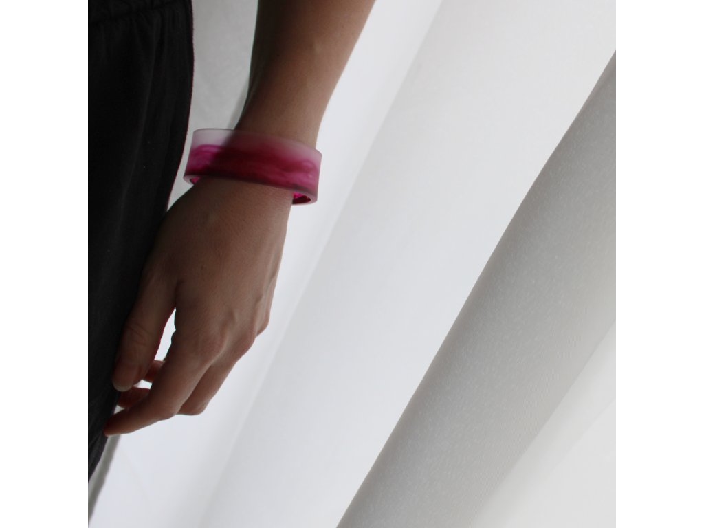 Materiál: akrylátového sklo (plexisklo = náramek) s abstraktní malbou akrylovou barvou.