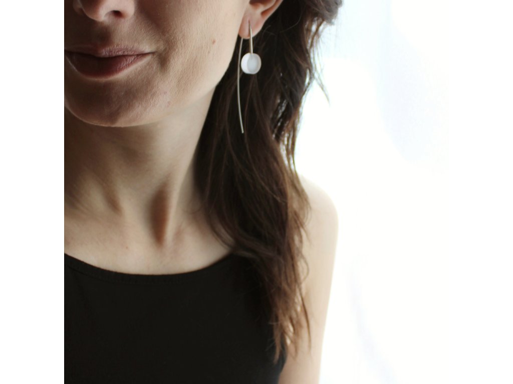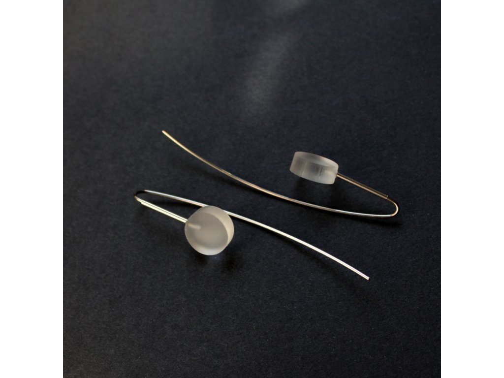 Kolečka z matně průsvitného akrylátového skla a dlouhá ohýbaná linka z chirurgické oceli.