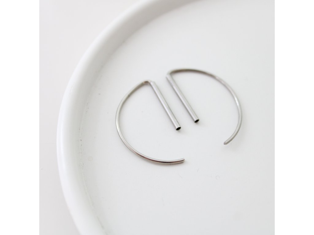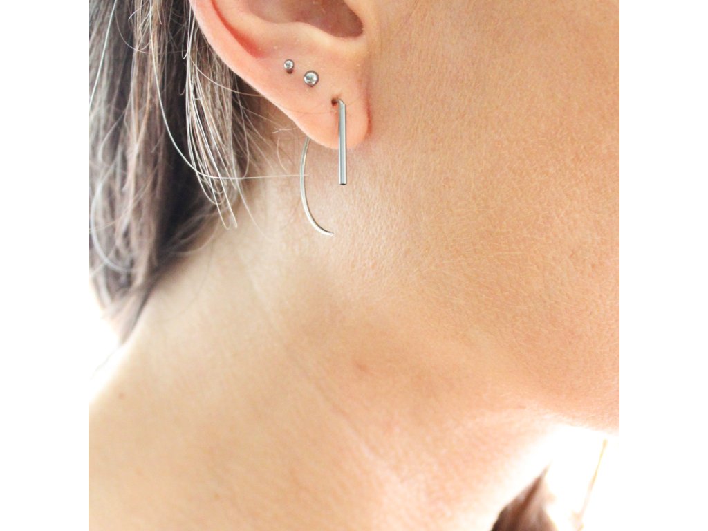 Náušnice se navléká do ucha obloučkem zepředu dozadu - vepředu zůstane zesílená linie, půlkruh vzadu.