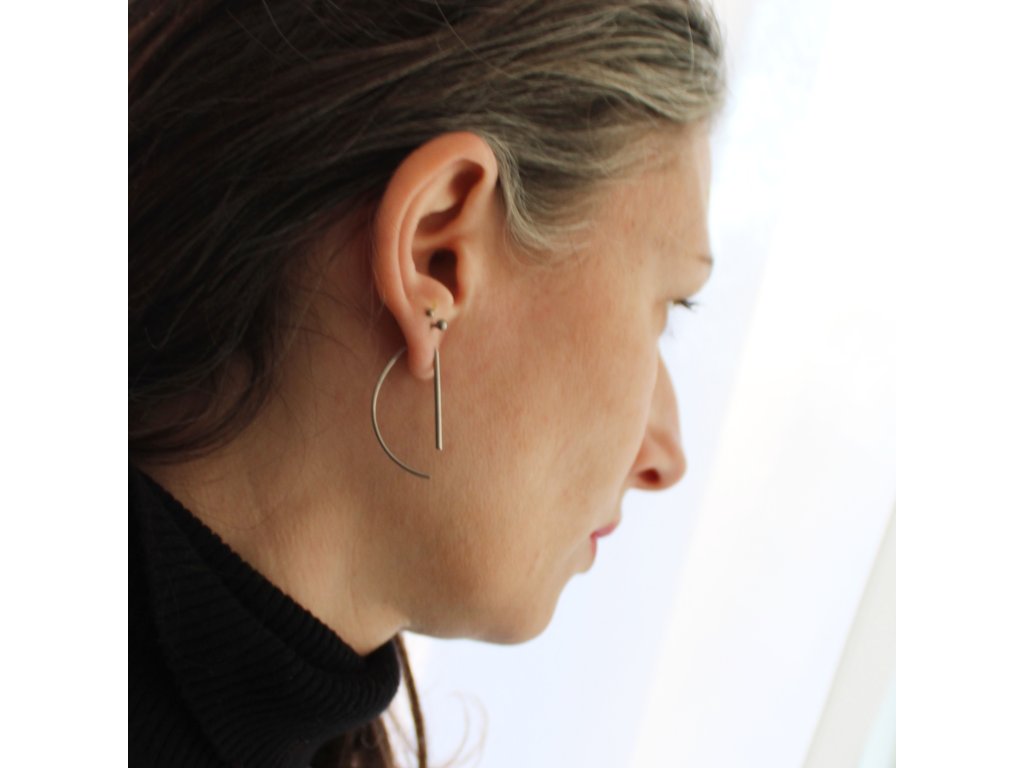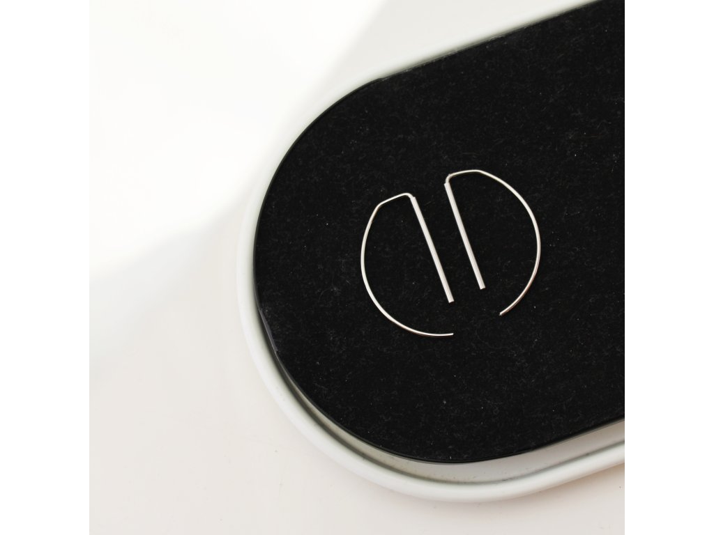 Náušnice se navléká do ucha obloučkem zepředu dozadu - vepředu zůstane zesílená linie, půlkruh vzadu.