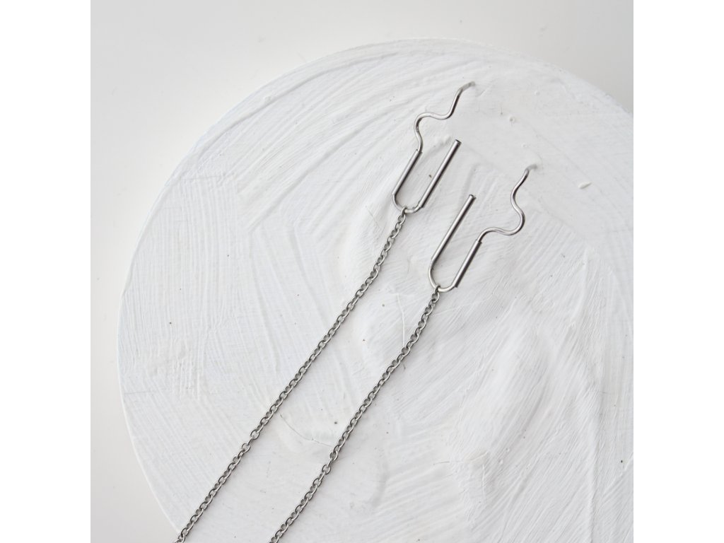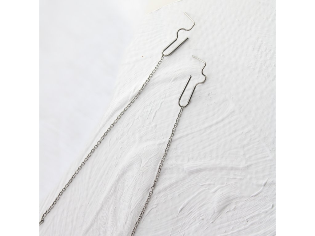 Ohýbaný tvar z chirurgucké oceli je lehce asymetrický ( jeden tvar měří 2,8 cm, druhý 3 cm)
