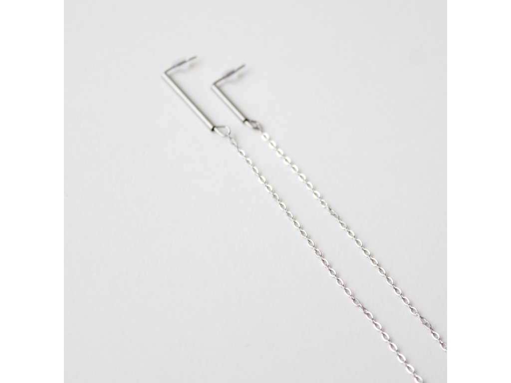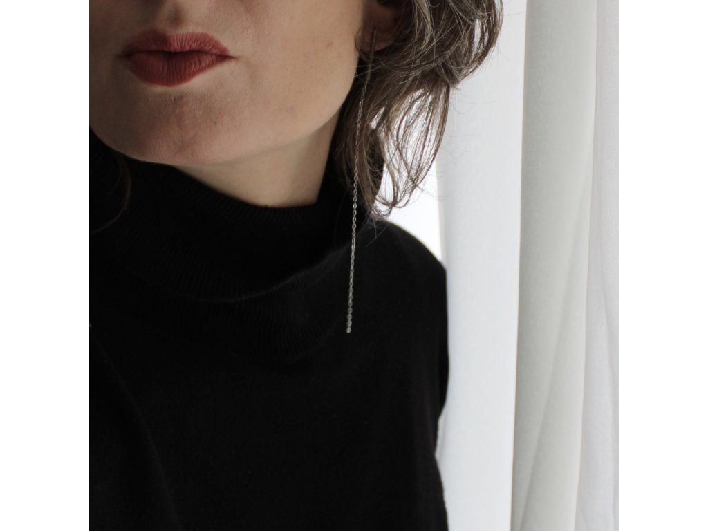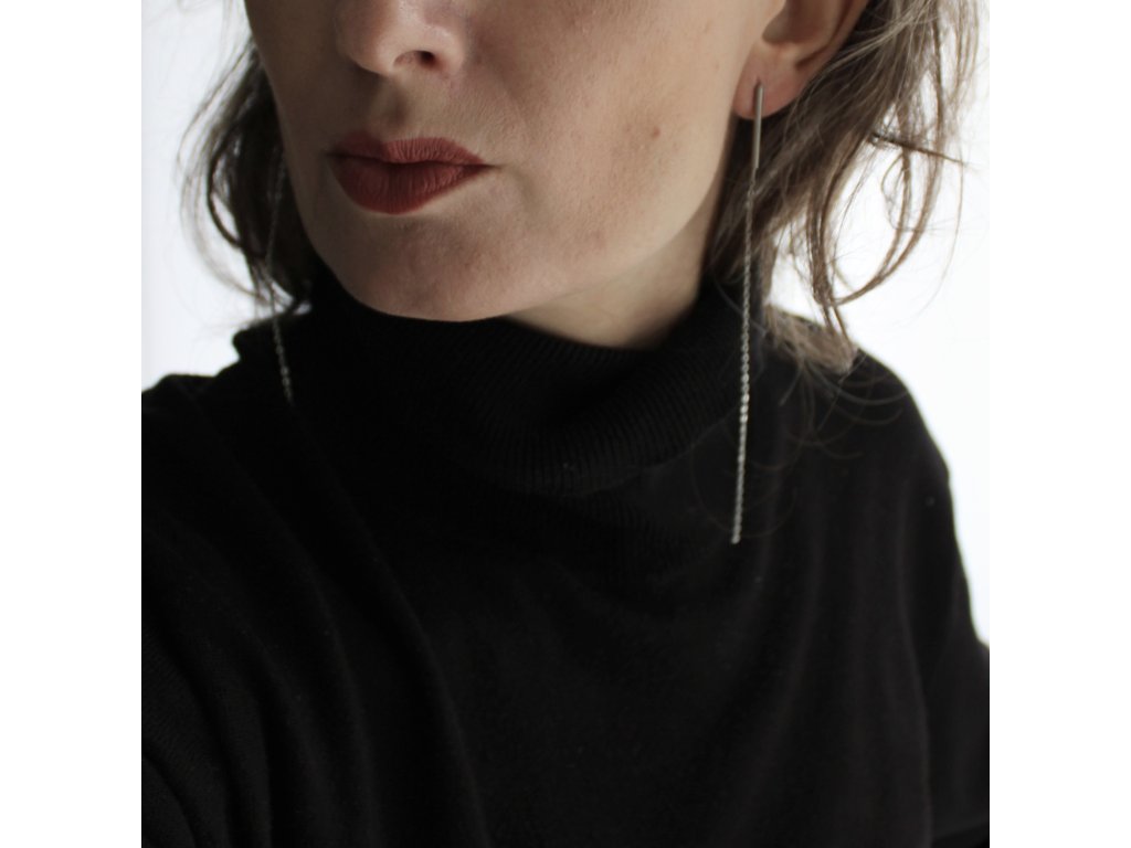 Dlouhé efektní náušnice s řetízky, které zůstaly po výrobě náhrdelníků.