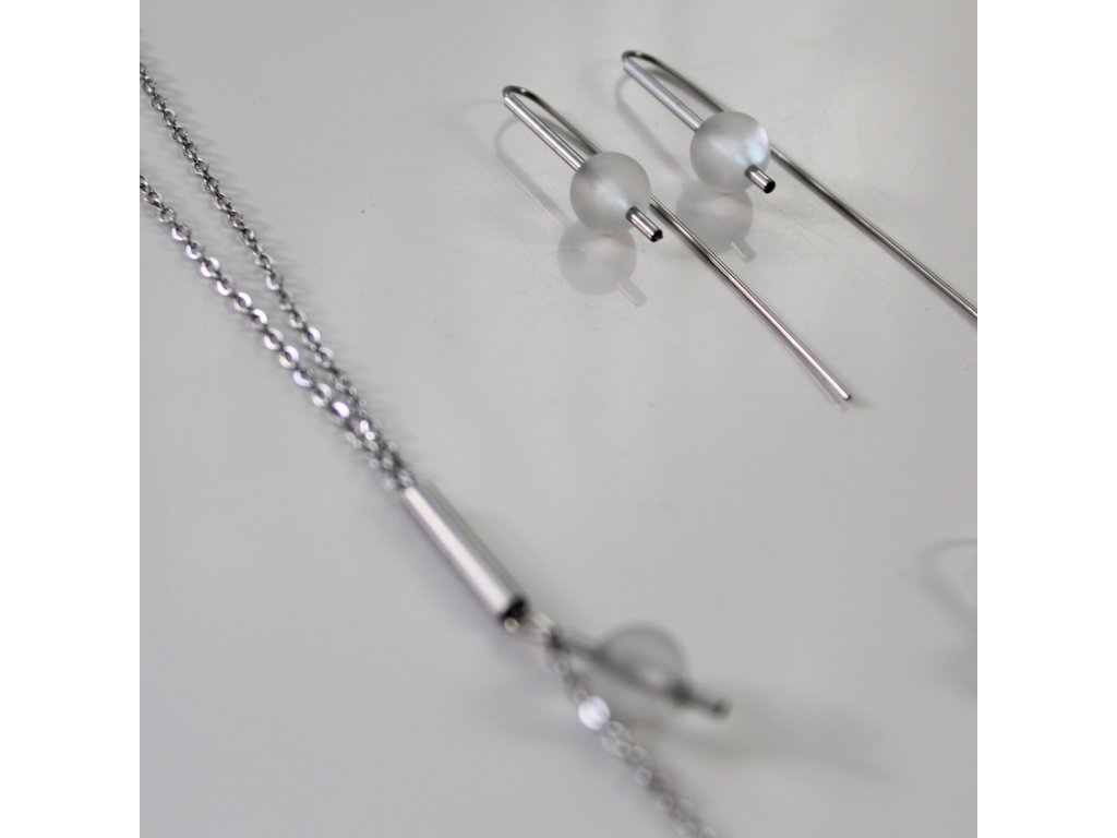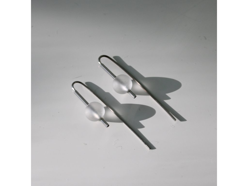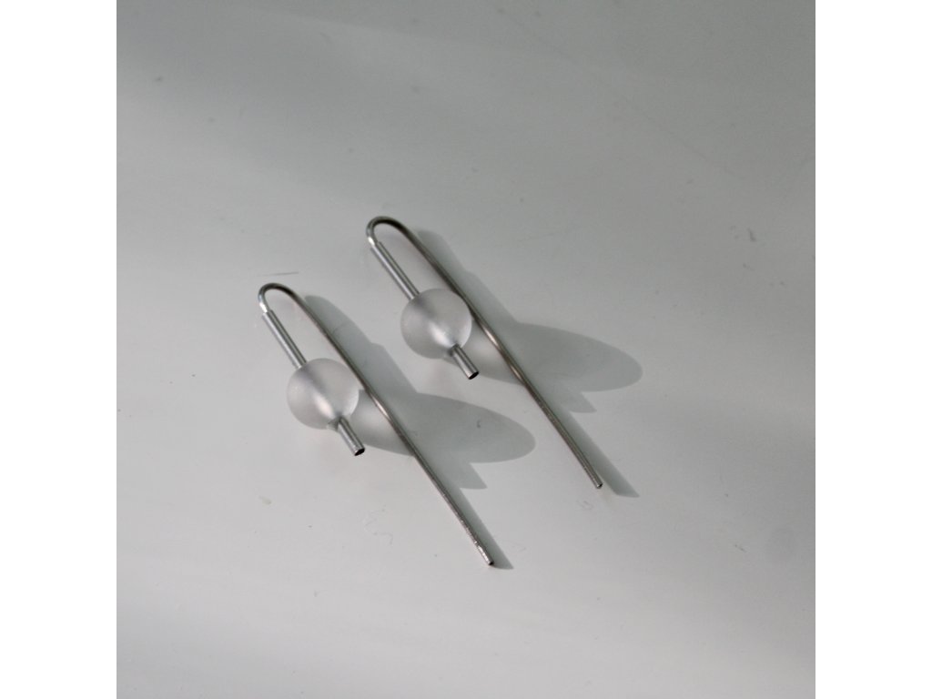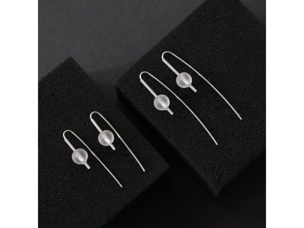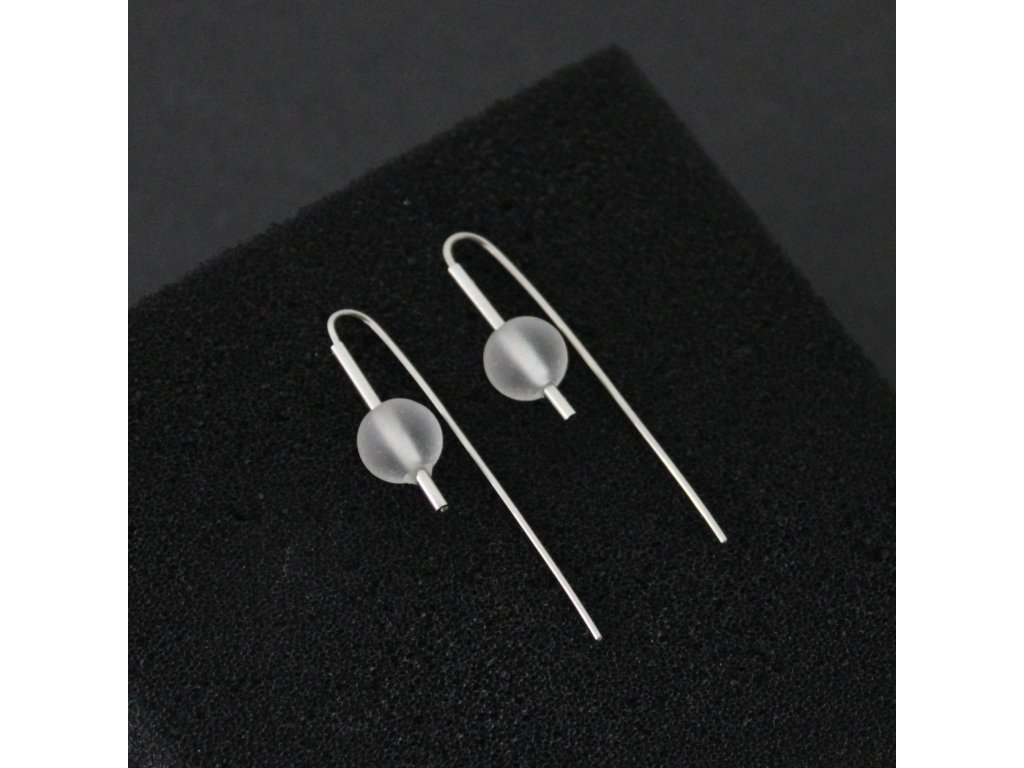Pár náušnic s pravidelnými skleněnými perlami s jemně matným povrchem.