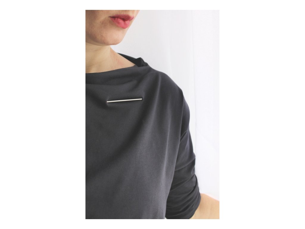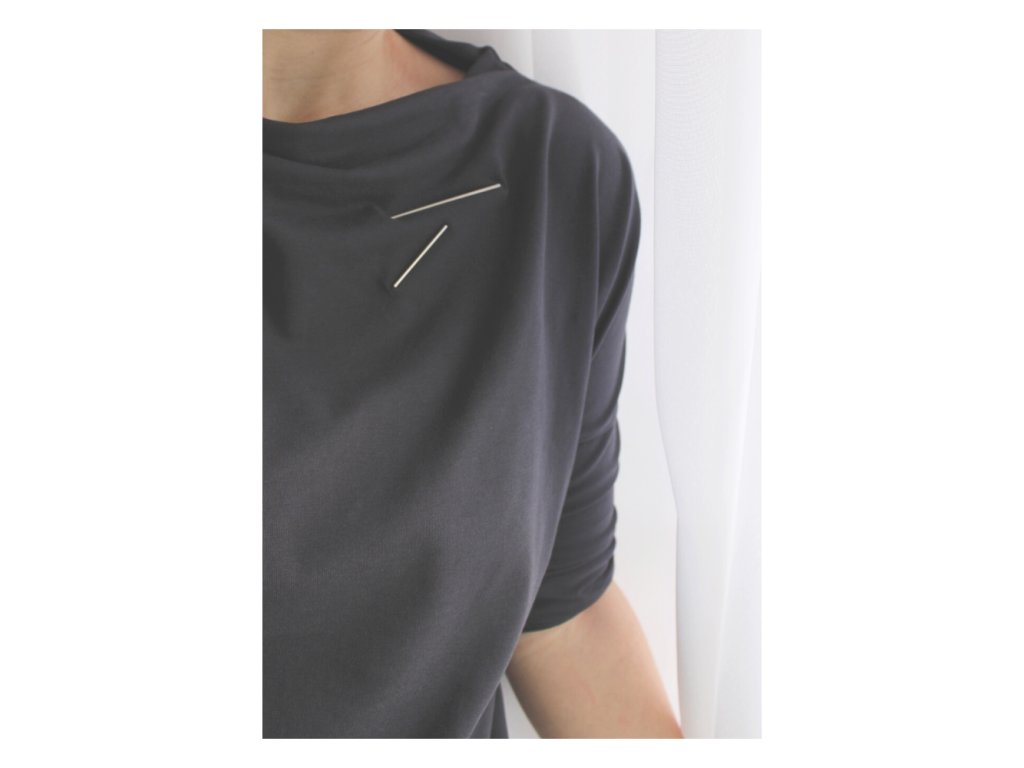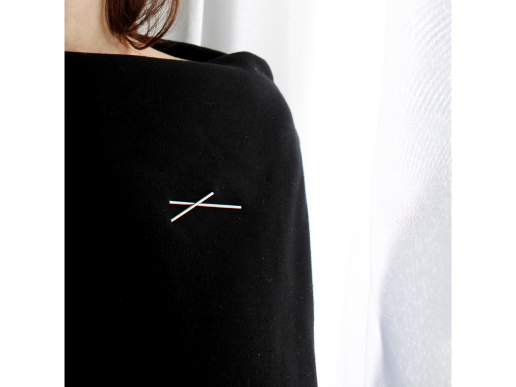 Brož se připíná tenkými drátky z chirurgické oceli, které jsou z obou stran brože. Drátky provlečete látkou zajistíte pevnou silikonovou zarážkou - stejný systém používám u náušnic a i zde se osvědčil, zarážka nesklouzne a chrání drátek, aby vás neškrábal.